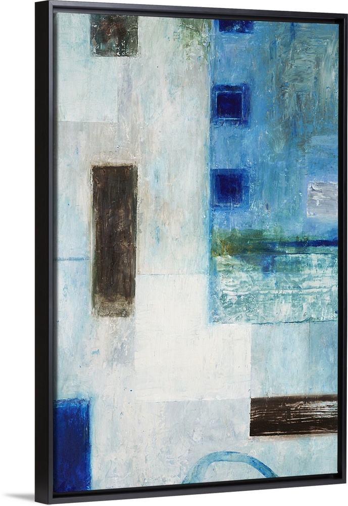 <p>Abstract geometric artwork in blue tones with black squares.</p>