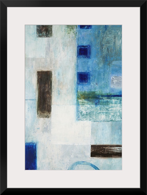 <p>Abstract geometric artwork in blue tones with black squares.</p>