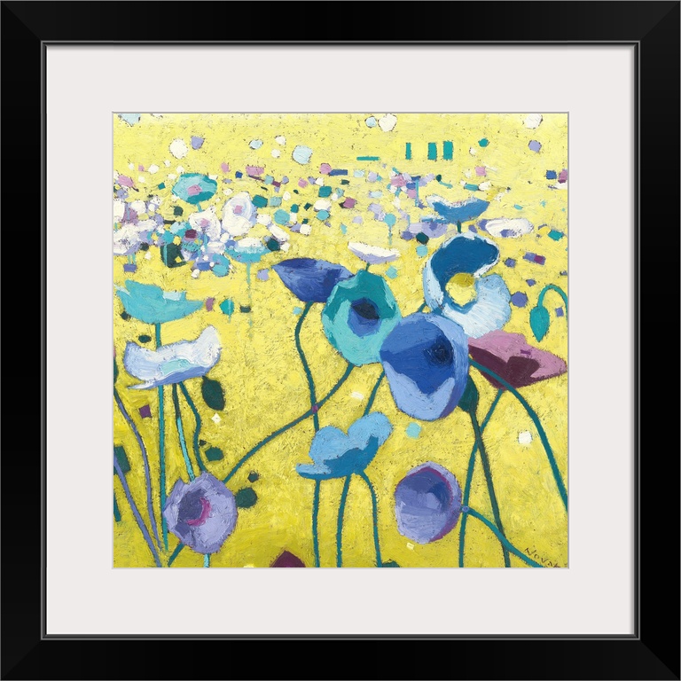 <p>Contemporary artwork of a field of blue poppies with long stems.</p>