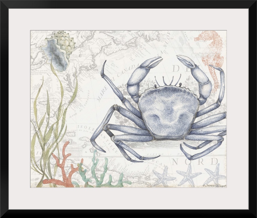 Art Coastal Beach House Décor Decorative Art Painting Wildlife Marine Life Crab Susan Winget
