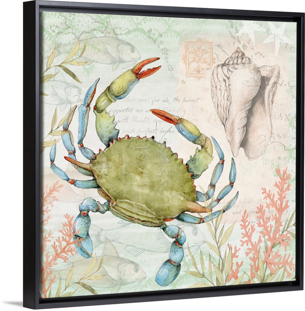 <p>Softly hued scene featuring a green crab is a subtle and tasteful coastal statement.</p>