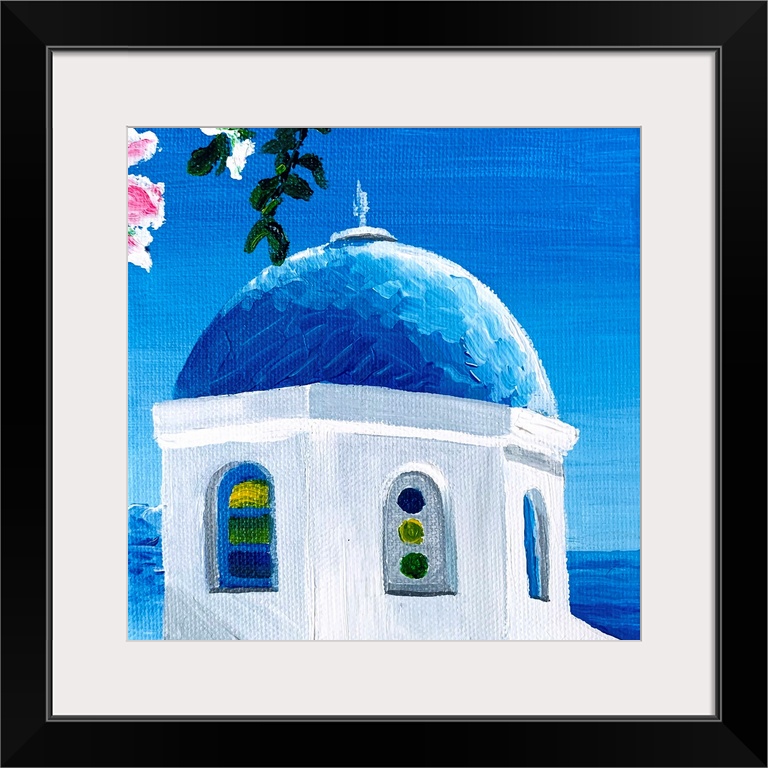 Architecture Art Transitional Blue Wall Art Contemporary Art Rivers, Lakes, and Oceans Painting Europe Greece Santorini Key And Sea