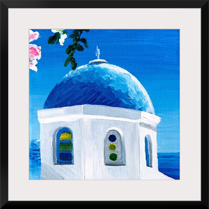 Architecture Art Transitional Blue Wall Art Contemporary Art Rivers, Lakes, and Oceans Painting Europe Greece Santorini Key And Sea