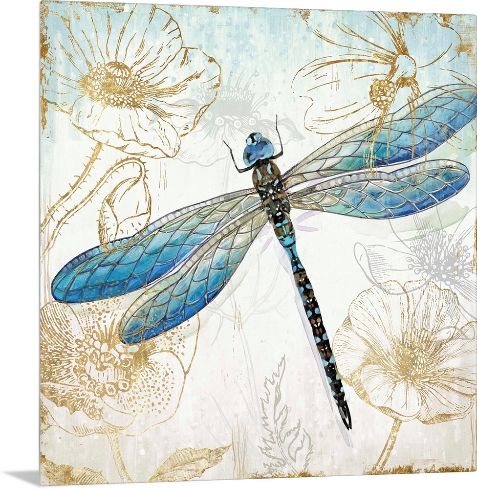 Art Blue Wall Art Decorative Art Florals Graphic Art Wildlife Insect and Arachnid Dragonfly
