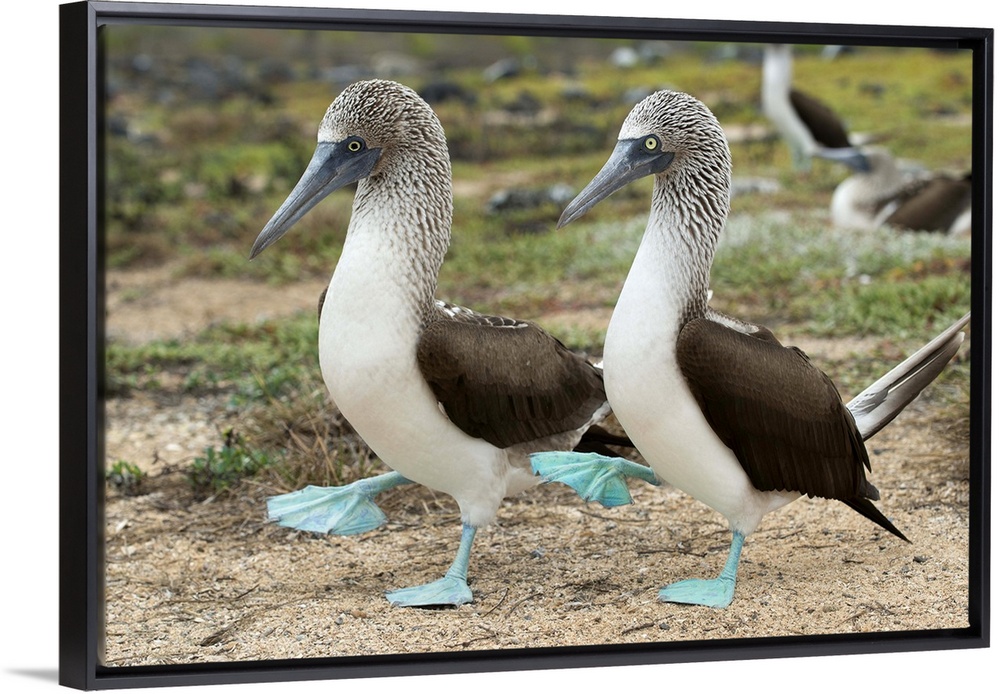 <p>Blue-footed Booby pair in courtship dance, Santa Cruz Island, Galapagos Islands, Ecuador.</p>