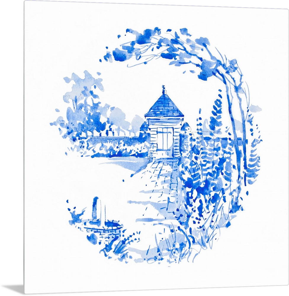 Art Blue Flowers Blue Wall Art Decorative Art Florals Landscapes Garden Painting She Shed Décor Watercolor