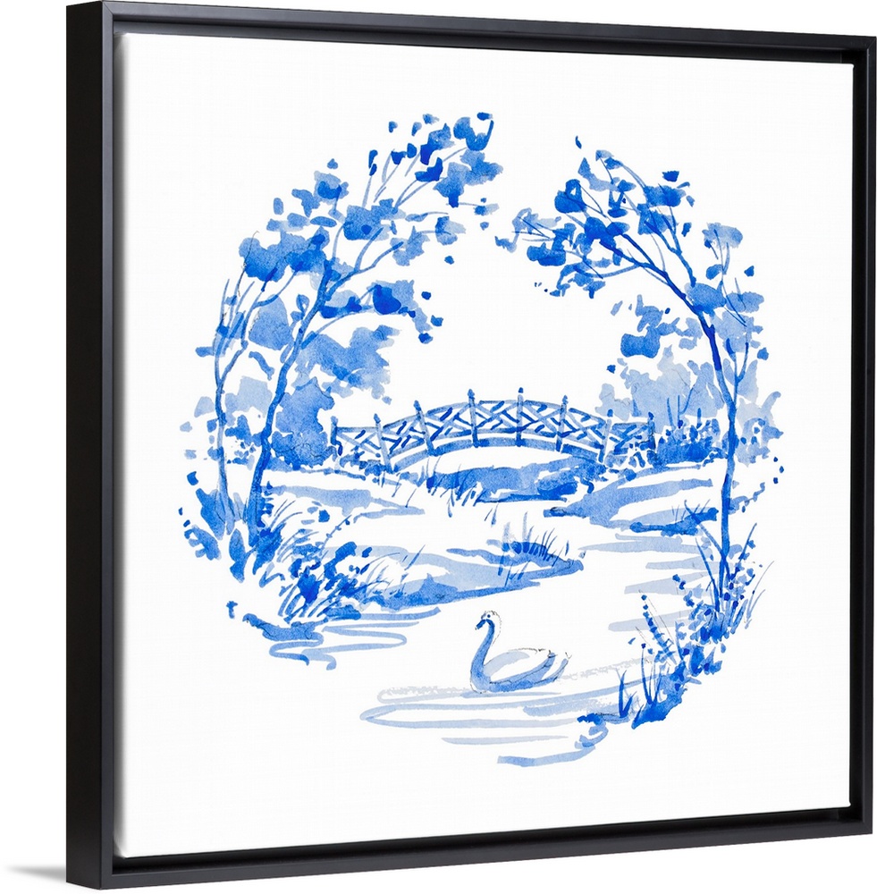 Architecture Bridge Art Blue Flowers Blue Wall Art Decorative Art Florals Landscapes Garden Painting Watercolor