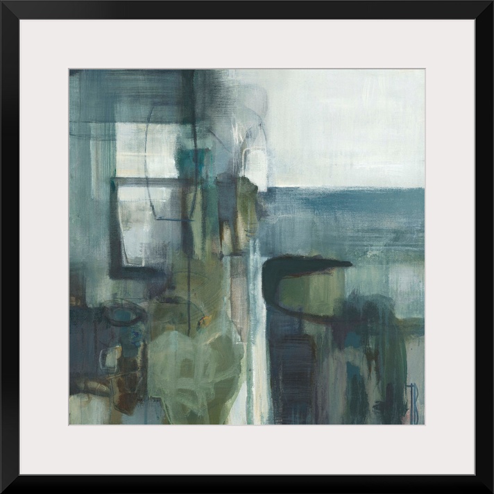 <p>Contemporary abstract painting using pale muted blue and green tones.</p>