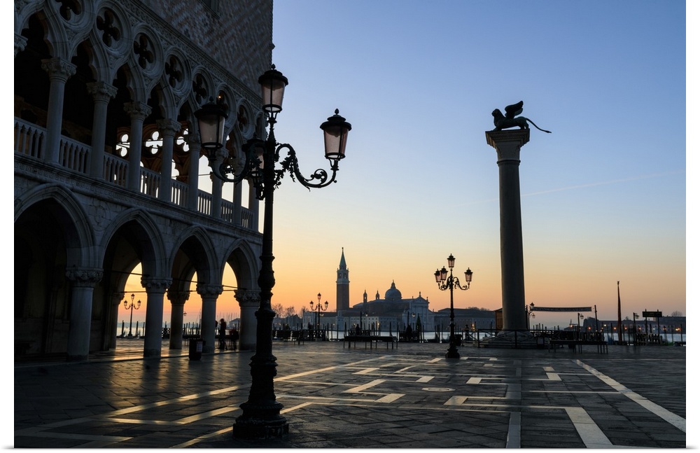 <p>Blue hour, before sunrise in winter, Doge's Palace, Piazzetta San Marco, Venice, UNESCO World Heritage Site, Veneto, Italy, Europe</p>