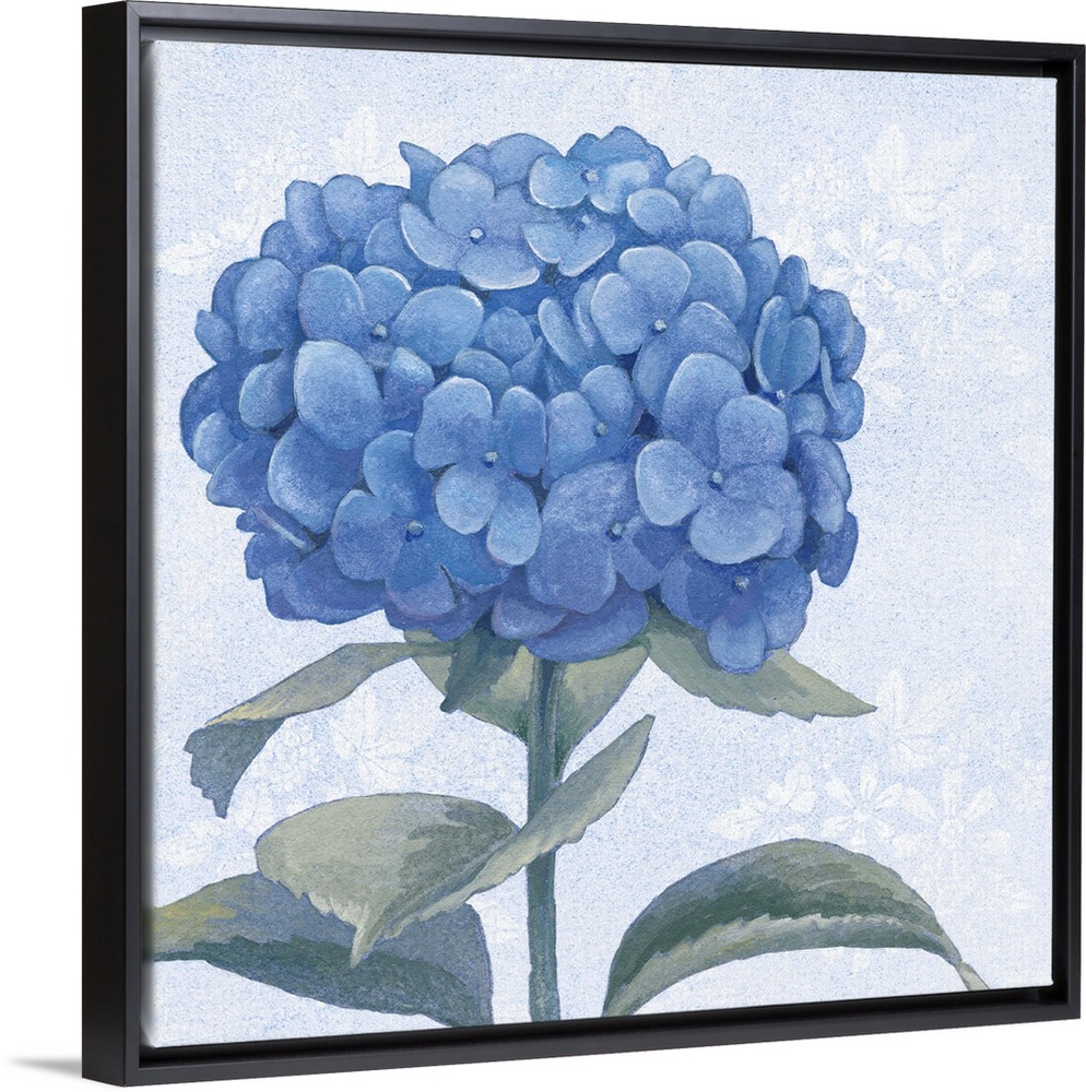 <p>Painting of hydrangea blossoms in soft blue and green tones.</p>