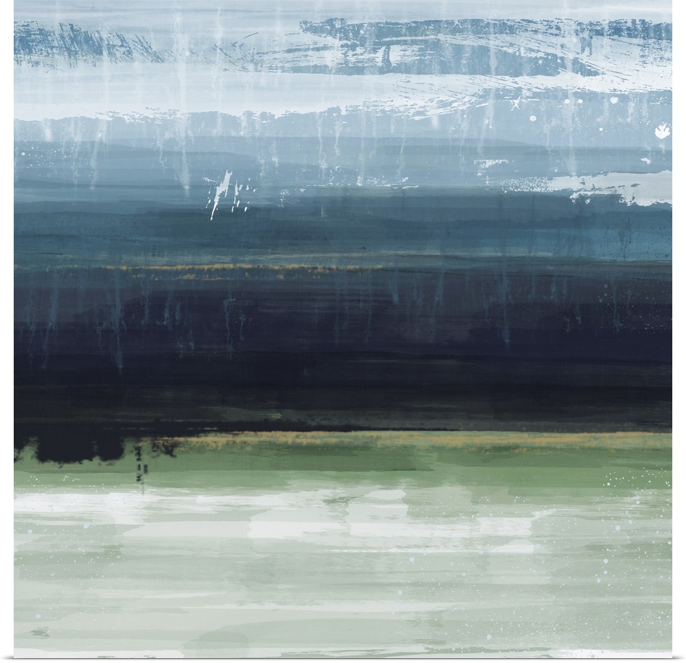 <p>Abstract contemporary painting with a gradient of two colors meeting near the middle of the canvas, creating what looks like a landscape painting.</p>