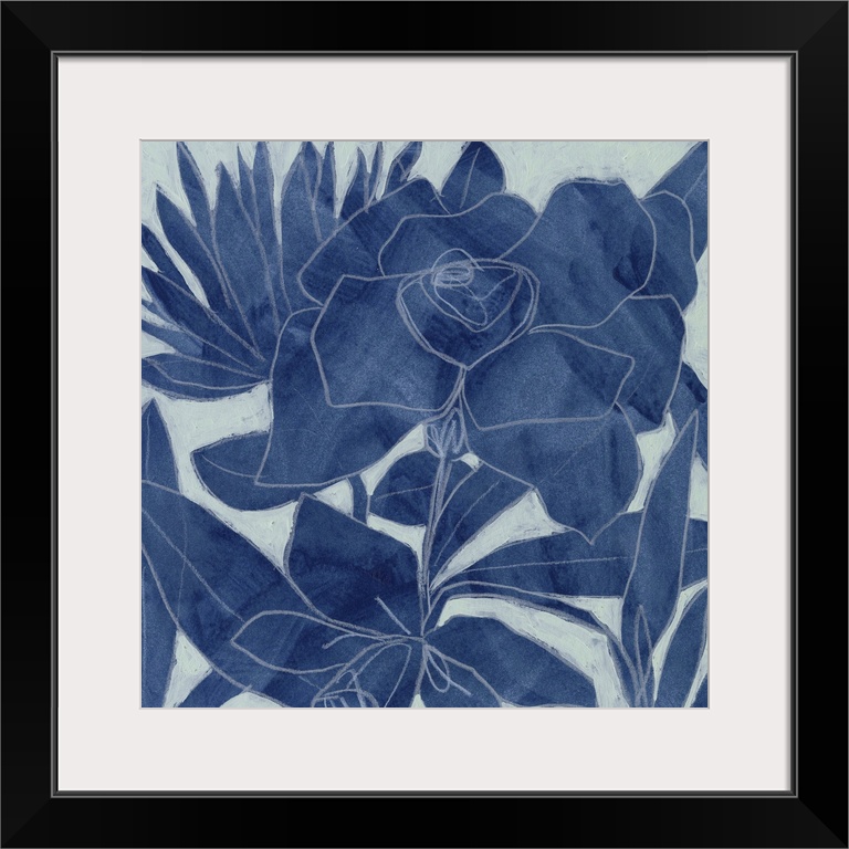 Art Blue Flowers Blue Wall Art Navy Blue Plants and Flowers Mediterranean Dream Decorative Art Florals Painting June Erica Vess