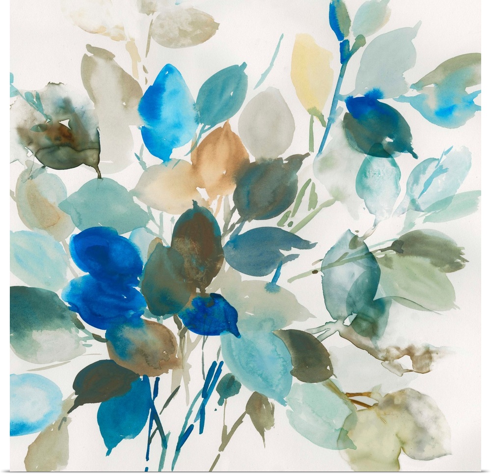 Art Blue Flowers Contemporary Art Florals Leaves Asia Jensen Painting Watercolor
