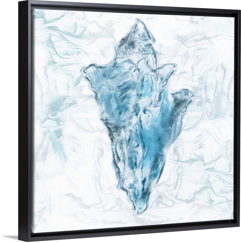 <p>Square beach themed painting of a blue seashell with a marbled finish and background.</p>