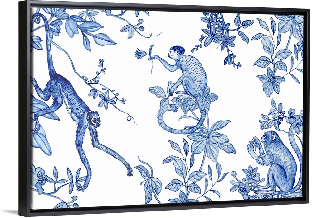 Art Eclectic Blue Wall Art Decorative Art Florals Painting Melissa Wang Watercolor Wildlife Monkey and Ape