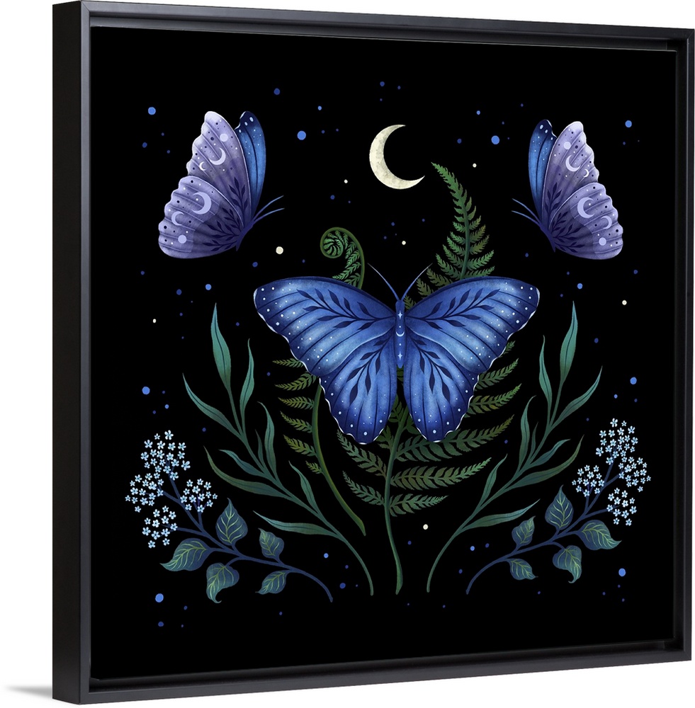 Art Blue Wall Art Decorative Art Episodic Drawing Fantasy Wildlife Florals Ferns Graphic Art Wildlife Insect and Arachnid Butterfly