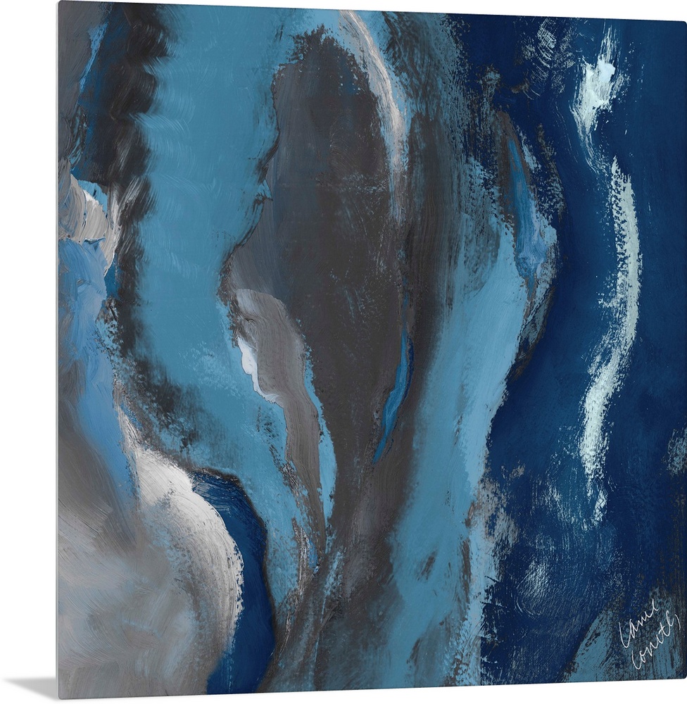 <p>Contemporary abstract painting using light and dark blue tones to create a sense of depth.</p>
