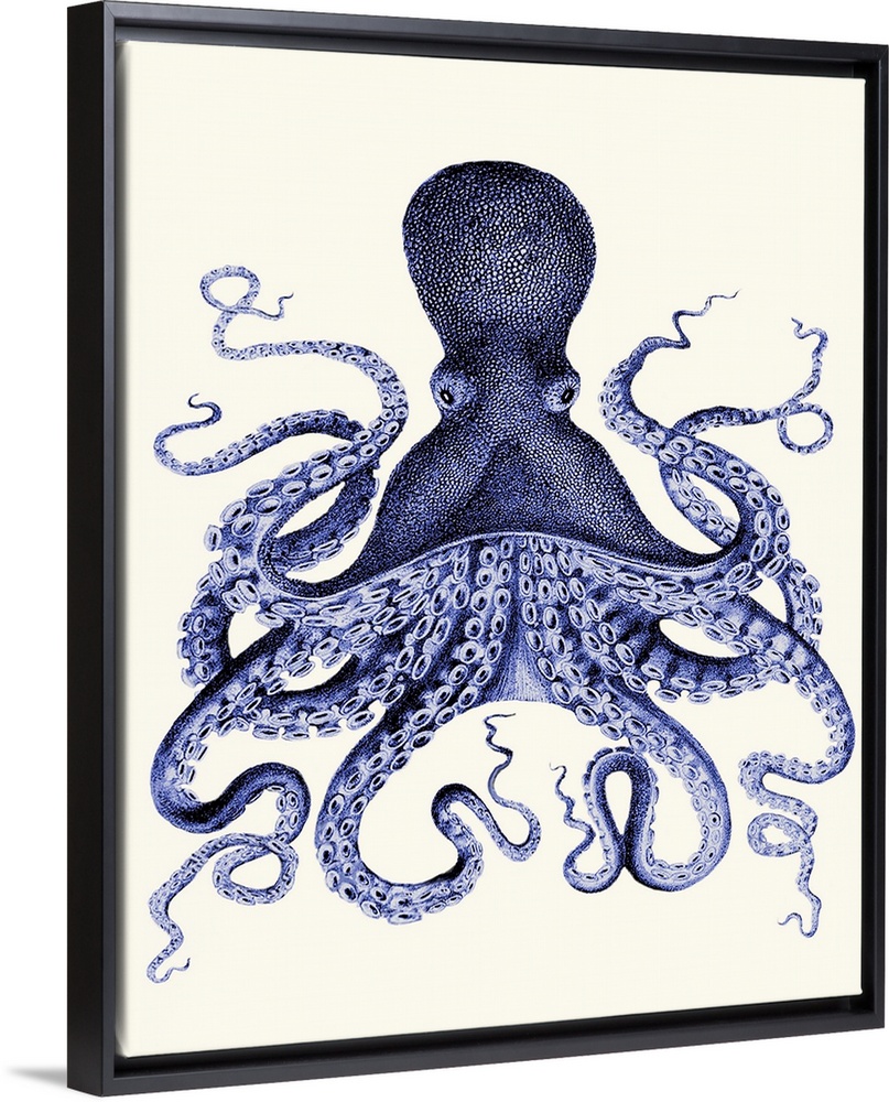 Art Beach House Décor Blue Wall Art Decorative Art Fab Funky Graphic Art Painting Wildlife Marine Life Octopus and Squid