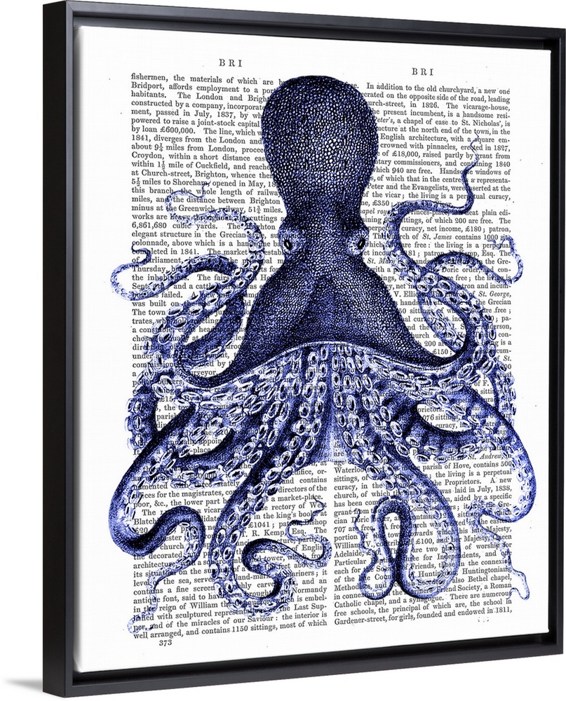 Art Blue Wall Art Decorative Art Dictionary Art Fab Funky Graphic Art Painting Wildlife Marine Life Octopus and Squid
