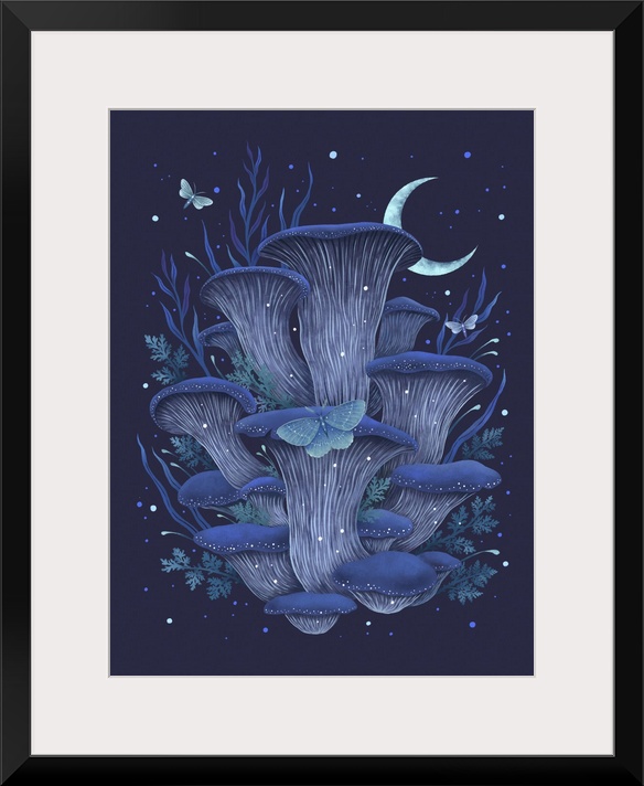 Art Blue Wall Art Decorative Art Episodic Drawing Fantasy Wildlife Florals Mushrooms Graphic Art Wildlife Insect and Arachnid Butterfly