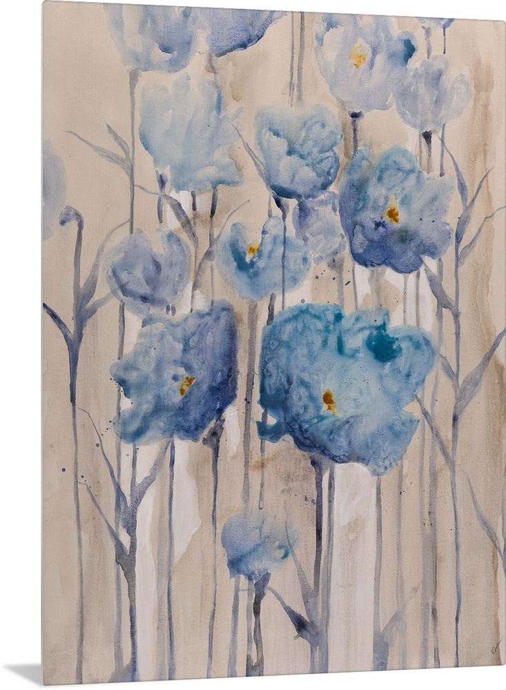 Art Scandinavian Blue Flowers Blue Wall Art Contemporary Art Plants and Flowers Rikki Drotar Florals Painting Watercolor