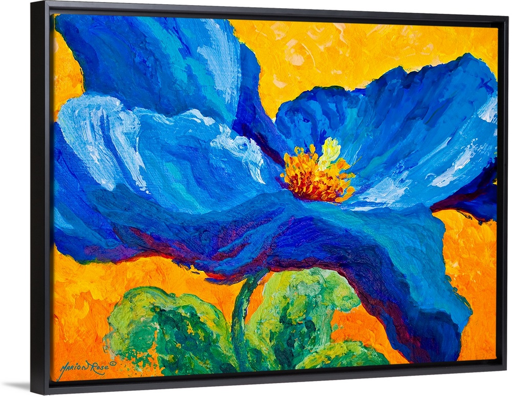 Art Blue Wall Art Cobalt Blue Contemporary Art Plants and Flowers Florals Poppy Painting Marion Rose Wall Art Yellow Wall Art