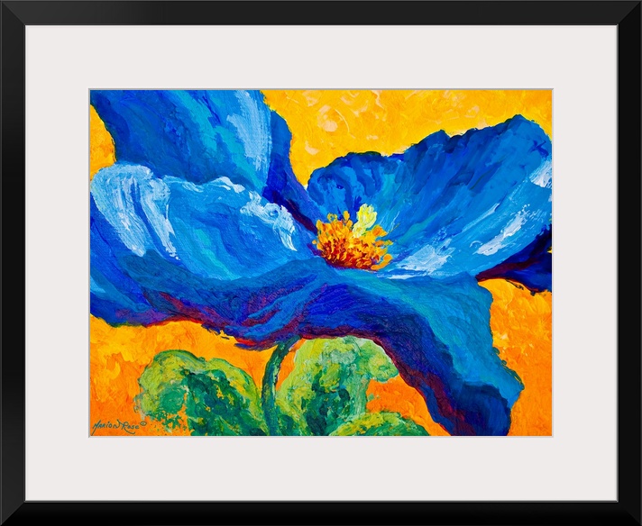 Art Blue Wall Art Cobalt Blue Contemporary Art Plants and Flowers Florals Poppy Painting Marion Rose Wall Art Yellow Wall Art