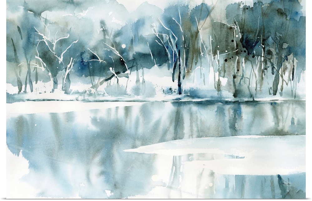 Art Transitional Blue Wall Art Rivers, Lakes, and Oceans Decorative Art Lake Painting Katrina Pete Reflections Watercolor