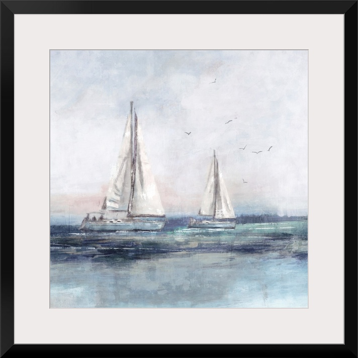 Art Coastal Nina Blue Blue Wall Art Decorative Art Painting Sailing Transportation Boat Sailboat