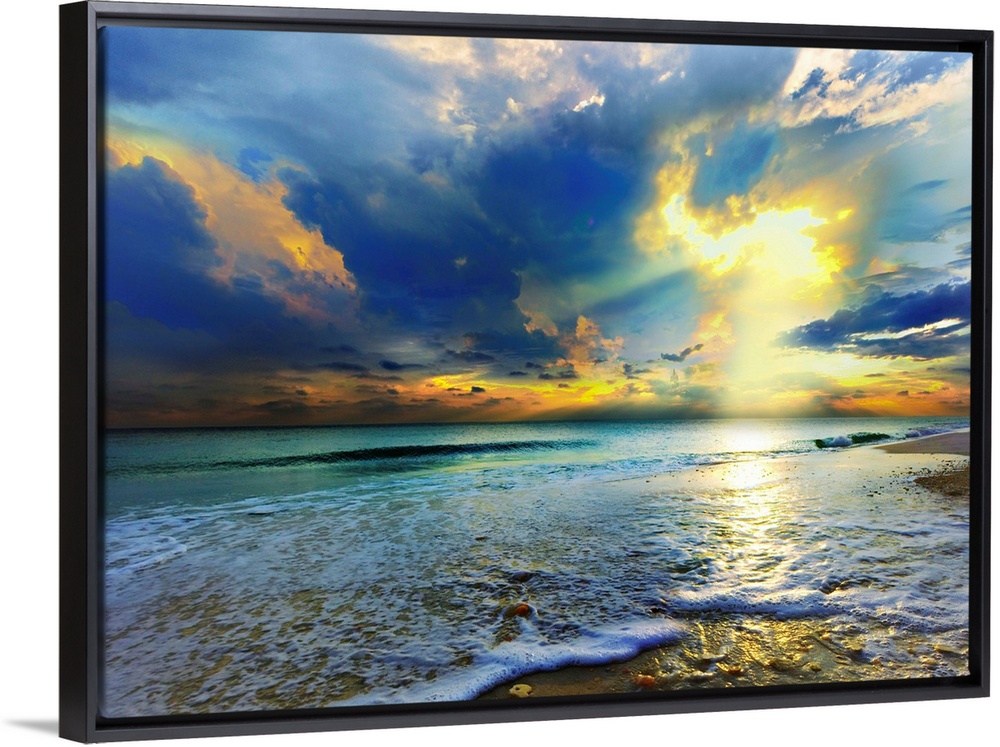 <p>Bright golden sunrays cast light onto the Emerald seascape below. Landscape taken on Navarre Beach, Florida.</p>