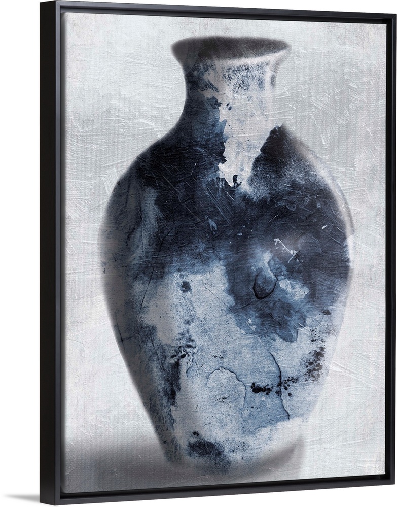 <p>Watercolor painting of a dark blue vase casting a shadow.</p>