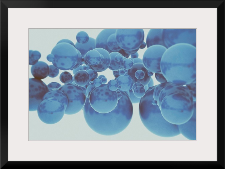 <p>Blue spheres against white background, illustration.</p>