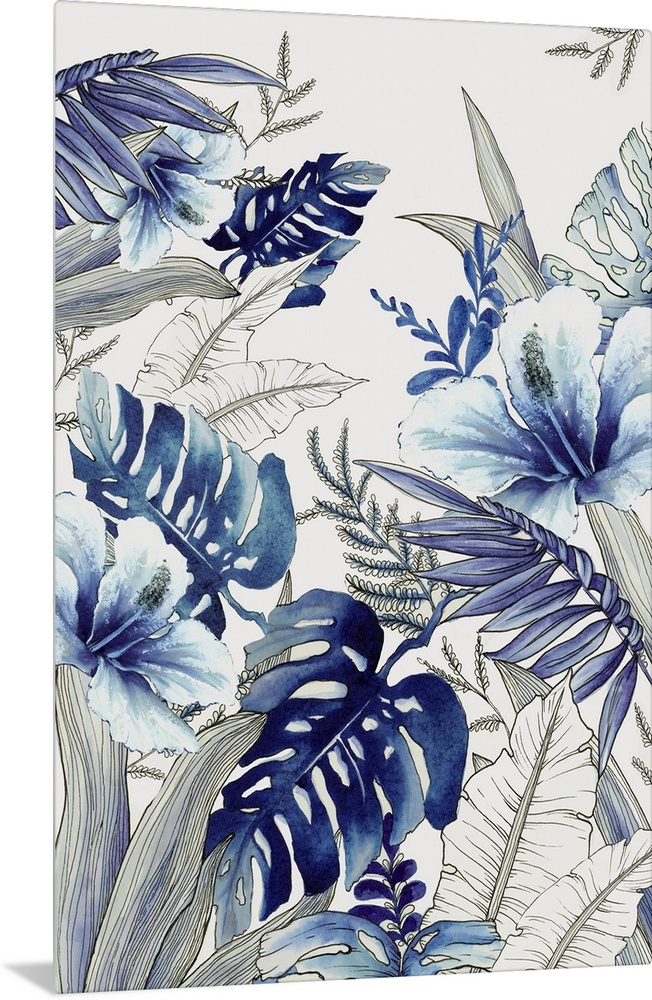 Art Bohemian Blue Wall Art Contemporary Art Florals Leaves Painting Watercolor