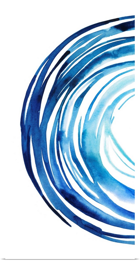 <p>This contemporary artwork is part one of two that contains a half circle made up of blue gestural lines. When placed side by side, both parts join to make an illusion of a vortex.</p>