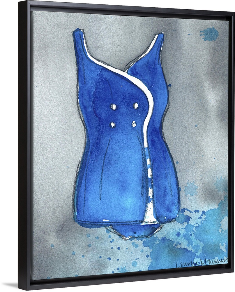 <p>Watercolor painting of a blue one piece bathing suit.</p>