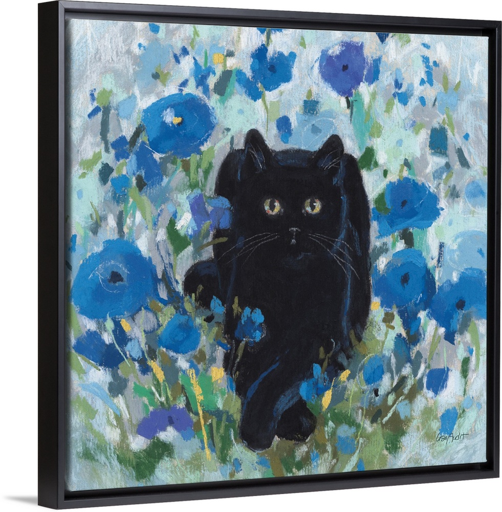 Art Lisa Audit Blue Flowers Blue Wall Art Decorative Art Florals Painting Wildlife Cat
