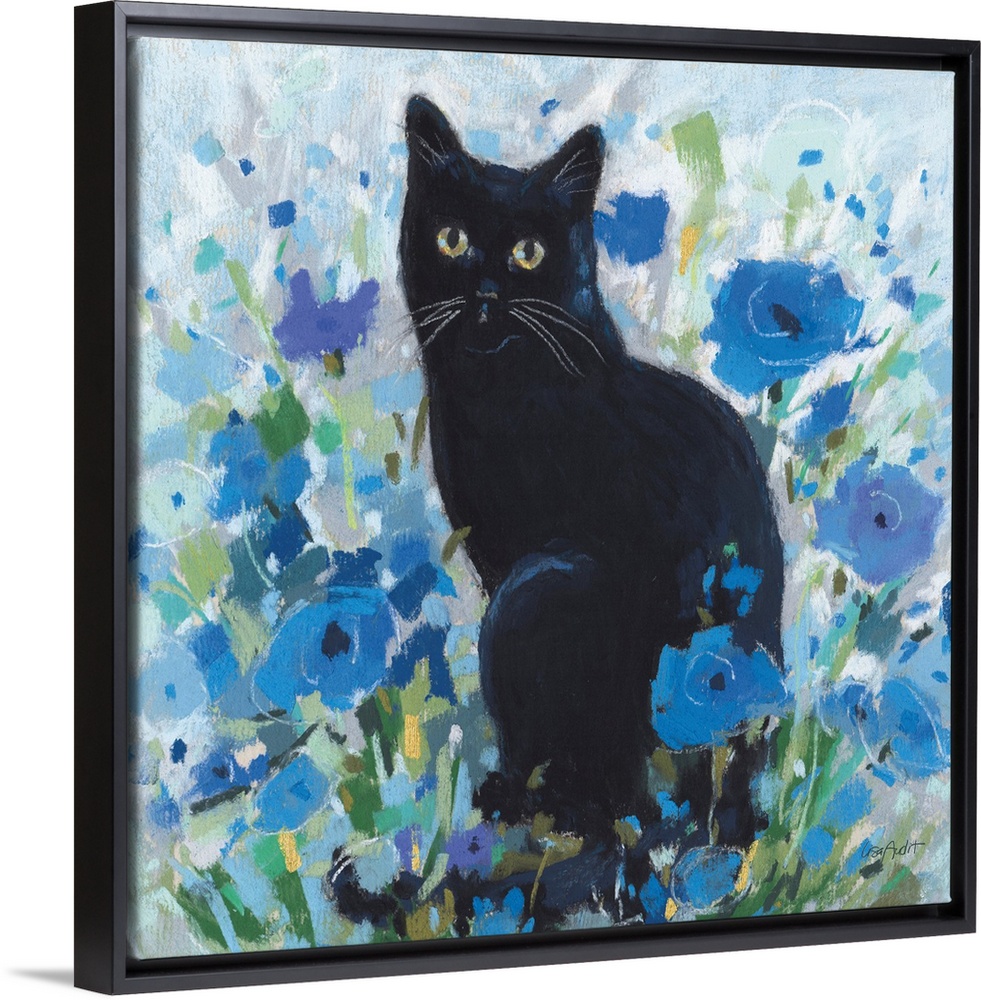 Art Lisa Audit Blue Wall Art Decorative Art Florals Painting Wildlife Cat