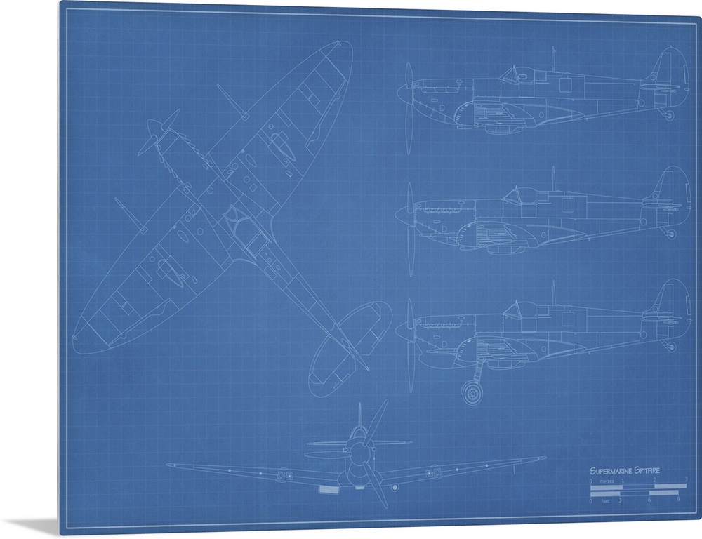 <p>Blueprint of a Supermarine Spitfire fighter plane.</p>