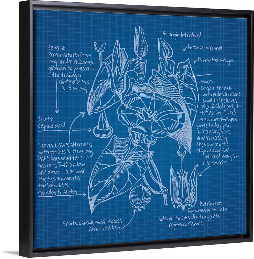Art Blueprints Blue Wall Art Florals Graphic Art Nobleworks Inc.