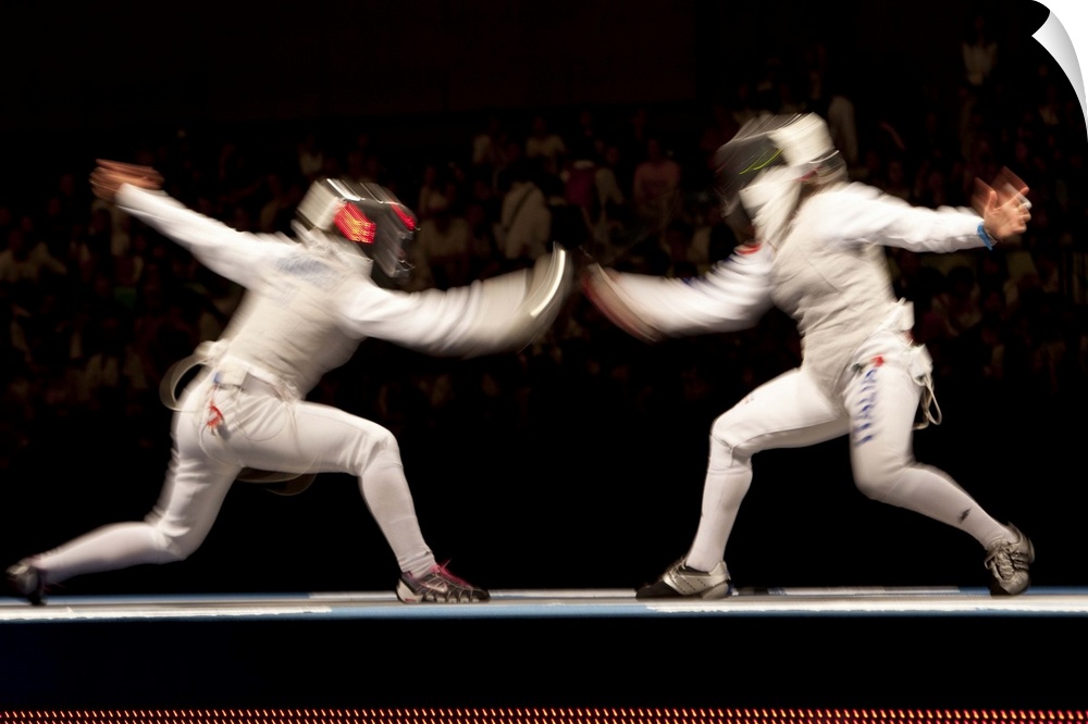 <p>Blurred action of women's fencing competition at the 2008 Olympic Summer Games, Beijing, China</p>