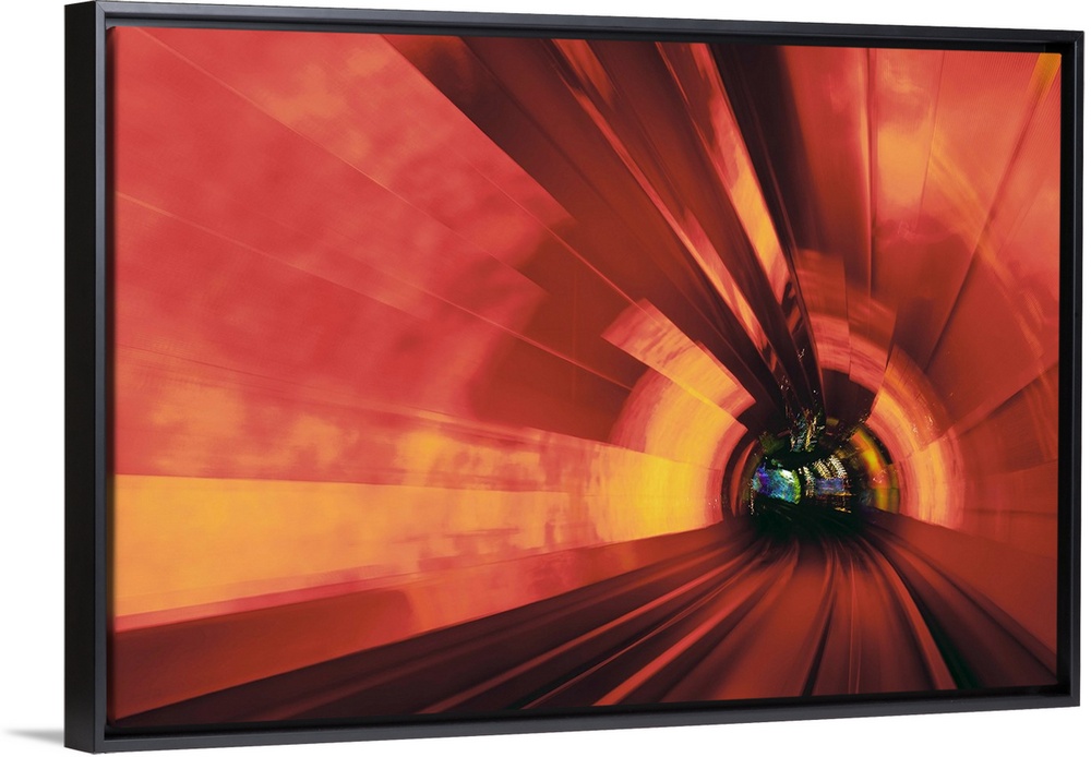 <p>Blurred motion light trails in an train tunnel under the Huangpu tiver linking the Bund to Pudong, Shanghai, China</p>