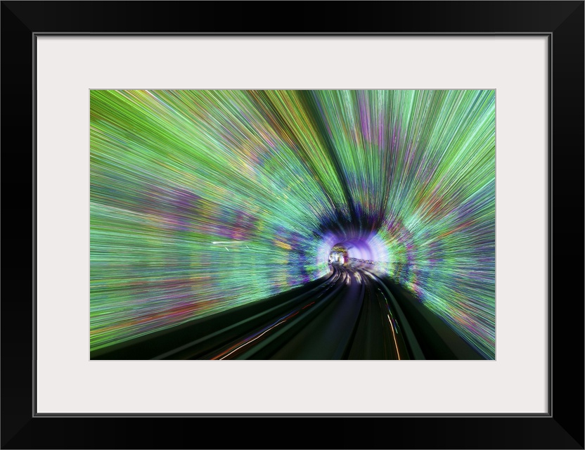 <p>Blurred motion light trails in an train tunnel under the Huangpu tiver linking the Bund to Pudong, Shanghai, China</p>