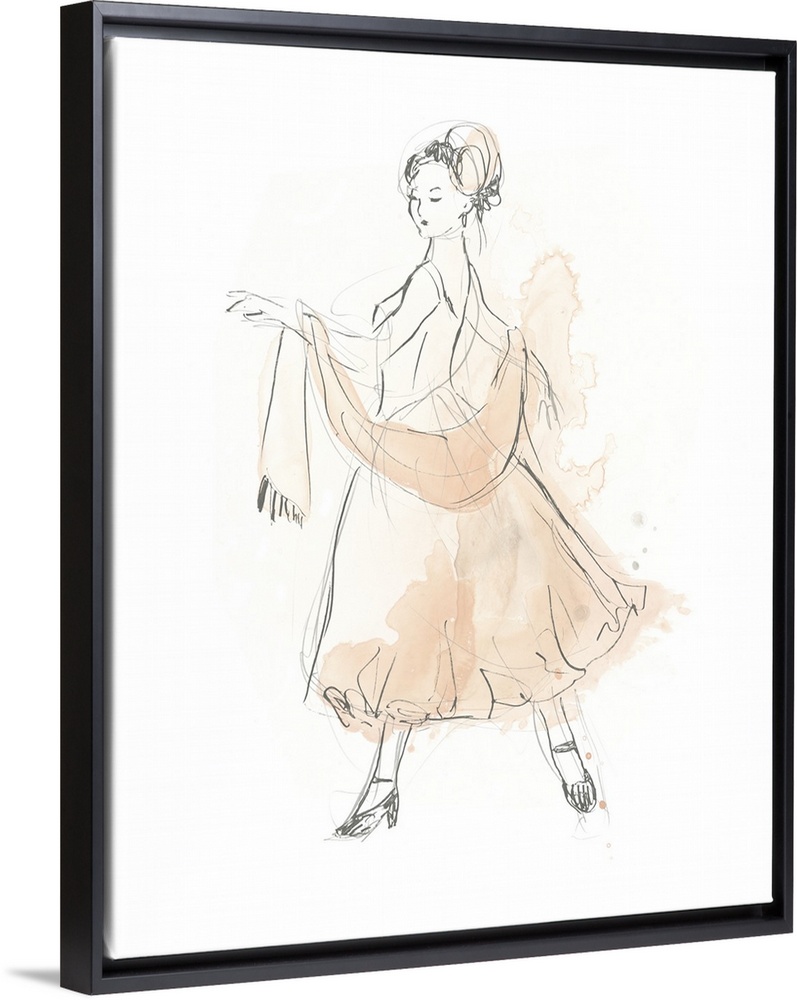 <p>Artistic drawing of a fashionable woman in a dress with light watercolor accents in blush.</p>