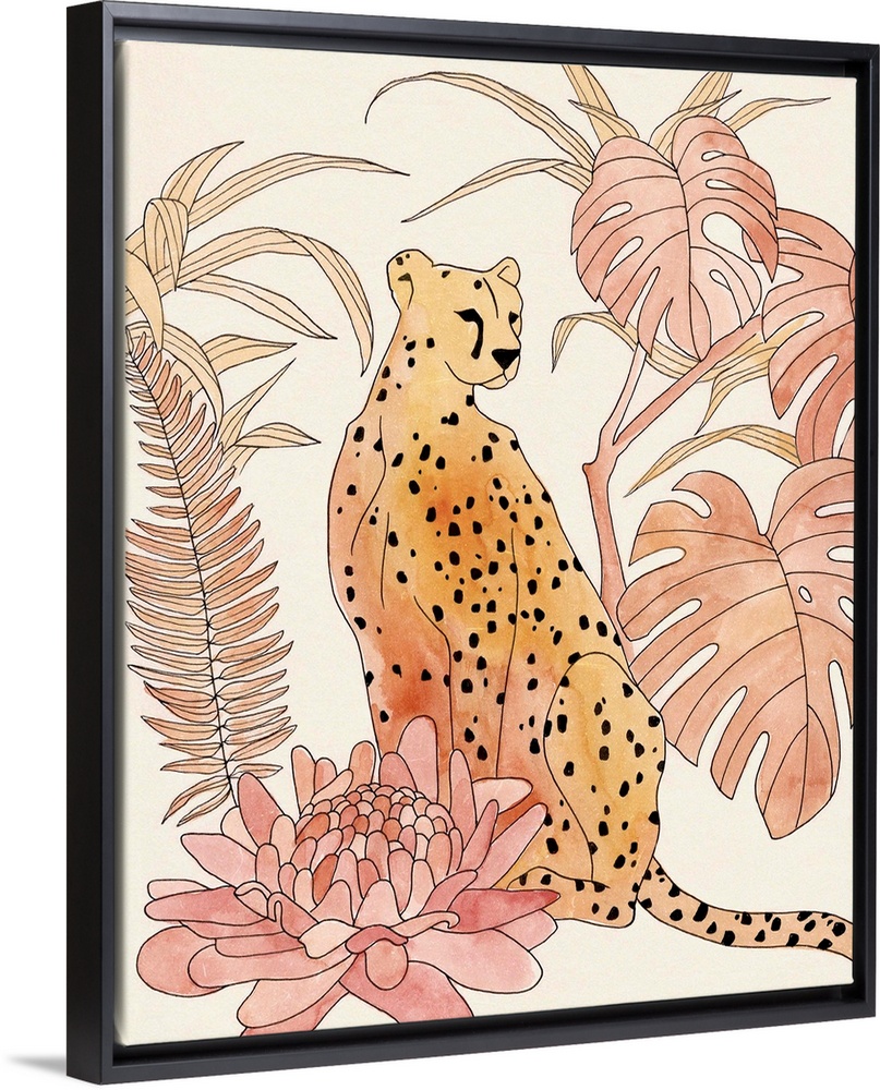 Art Bohemian Boho Revisited Decorative Art Florals Leaves Painting Pink Wall Art Annie Warren Wildlife Cheetah