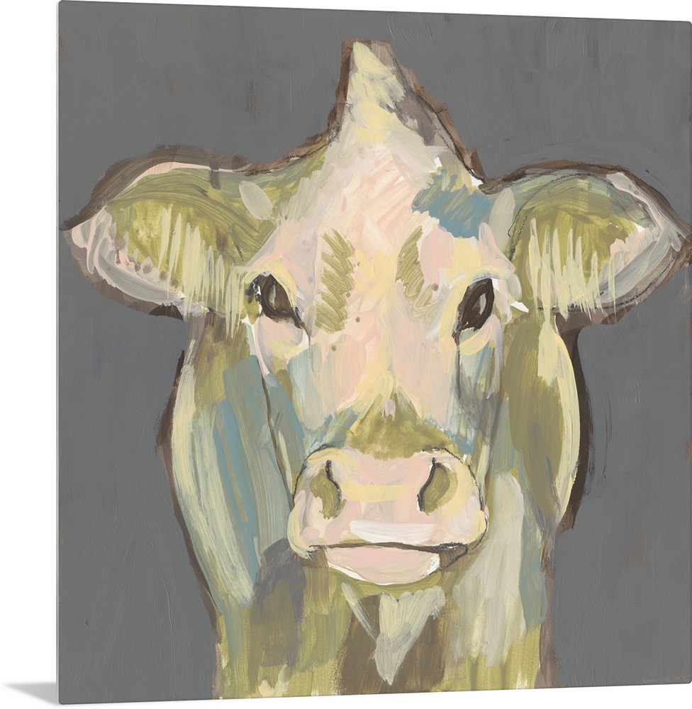 <p>Contemporary abstract portrait of a cow on a gray background.</p>