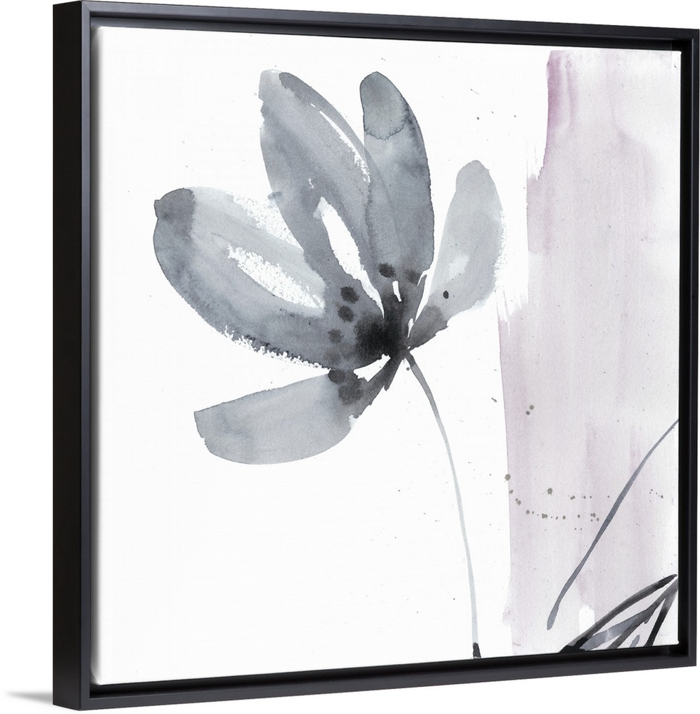 <p>Square watercolor abstract of a gray flower with a stroke of pink on the right.</p>