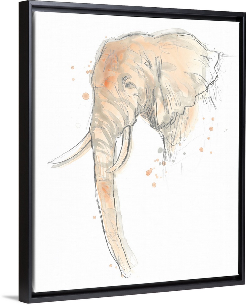 <p>Blush pink and gray watercolor painting of an elephant.</p>