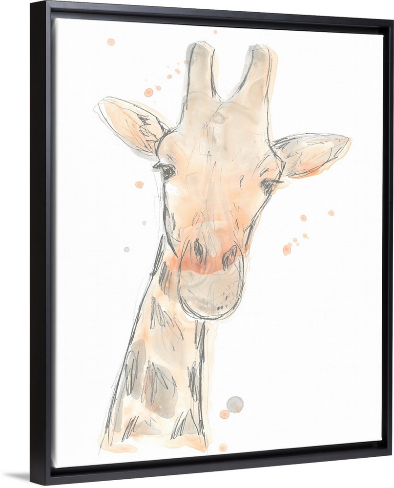 <p>Blush pink and gray watercolor painting of a giraffe.</p>
