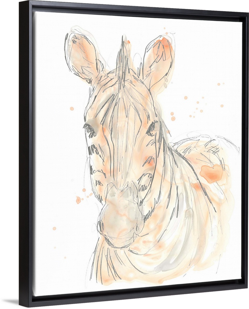 <p>Blush pink and gray watercolor painting of a zebra.</p>