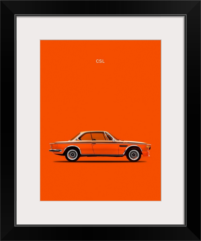 <p>Photograph of an orange BMW CLS 1972 printed on an orange background</p>